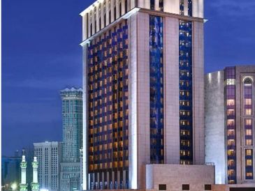 Travel with confidence at our 5-star luxury Makkah hotel. Jabal Omar Marriott Hotel, Makkah is located in the heart of the holy city, making it one of the most luxurious five-star hotels in the Jabal Omar complex, just a 3-minute walk to Al Masjid Al-Haram. The hotel offers 426 spacious and luxurious rooms in a modern style, including 52 opulent suites and an architectural masterpiece lobby and reception area. Indulge in our two restaurants: Spice Market and Olive, which provide stunning views of the Holy Haram and the city, along with Atrium Café, serving snacks, light meals, pastries, and soft drinks. For your spiritual needs, discover our private prayer hall overlooking the Haram, where you can listen to the Imam via our linked sound system.